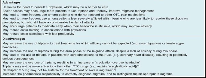 Availability Of Triptans Over The Counter Otc For The Treatment Of Migraine Has Advantages And Disadvantages Springerlink
