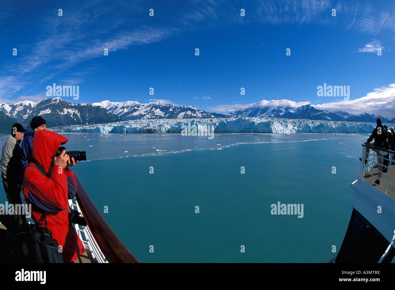 Alaska Cruise Ship Hubbard Glacier Woman Tourist Red Parka Stock Photo Alamy