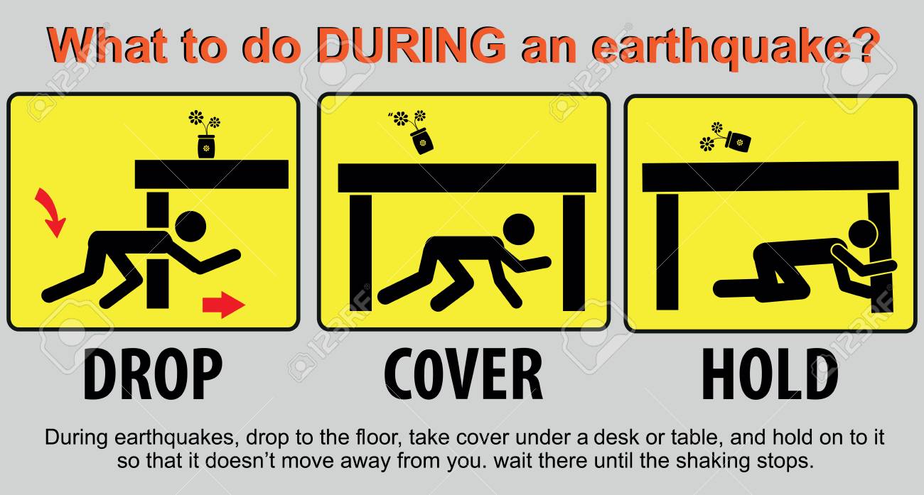 What To Do During An Earthquake Sign For A Sticker Banner Royalty Free Cliparts Vectors And Stock Illustration Image 96183589