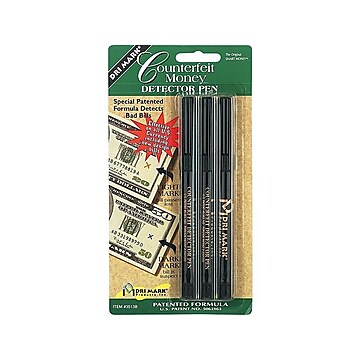 Staples counterfeit pen. These Staples counterfeit detector pens come in a three-count package so you can distribute them to each of your cash wraps. Are there differences in quality among the brands. This Dri Mark counterfeit money detector pen with holder makes it easy for you and your employees to protect your business from fraudulent money.